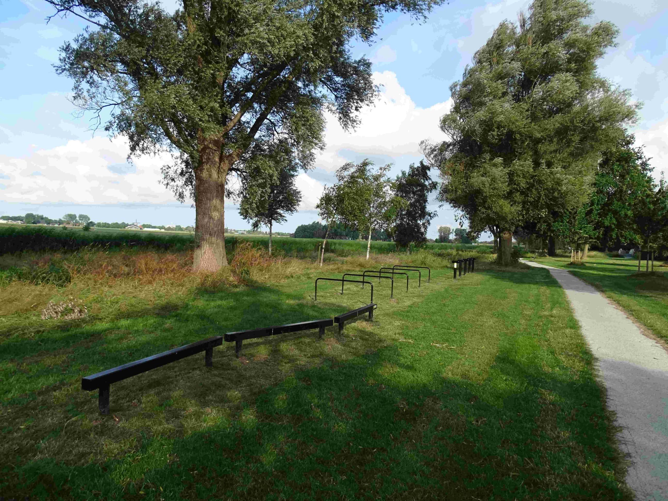 - Zorg voor enkele rustpunten (bankjes) op de route, liefst met beschutting tegen regen en wind[7,11,13].
