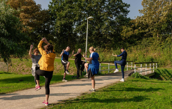Om een route succesvoller te maken kun je denken aan vormen van beloning of organiseren van activiteiten[5]. Denk aan loopgroepen of sportgroepjes uit de buurt of georganiseerde wandelingen vanuit het wijkcentrum[5]. Groepsdeelname wordt als stimulerend ervaren door gezelligheid, saamhorigheid en het onderhouden van contacten[4]. Schaamte, angst, voorzichtigheid en groepsdruk zijn mogelijk weg te nemen door hierover te praten in een groep[4]. Het gezamenlijk drinken van koffie of thee is een belangrijke stimulans om deel te nemen aan een activiteit[7,10]. Het zien van actieve anderen, het ervaren van een hoge mate van sociale cohesie en steun van lotgenoten is positief geassocieerd met het beweeggedrag[10,16].