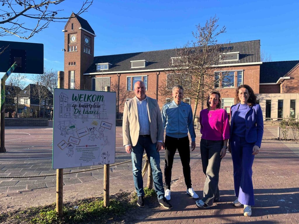 Alles begon zes jaar geleden tijdens een teamvergadering, toen Bastiaan (vakleerkracht gym) en Susan (leerkracht en ouder van drie leerlingen) zeiden: ‘We moeten wat met ons plein’. In de gymzaal organiseerden ze een eerste overleg met vertegenwoordigers van gemeente, jongerenwerk, leerkrachten en directie. Wouter, van wijkcommissie Laares, was daar toen nog niet bij, maar sloot later aan.