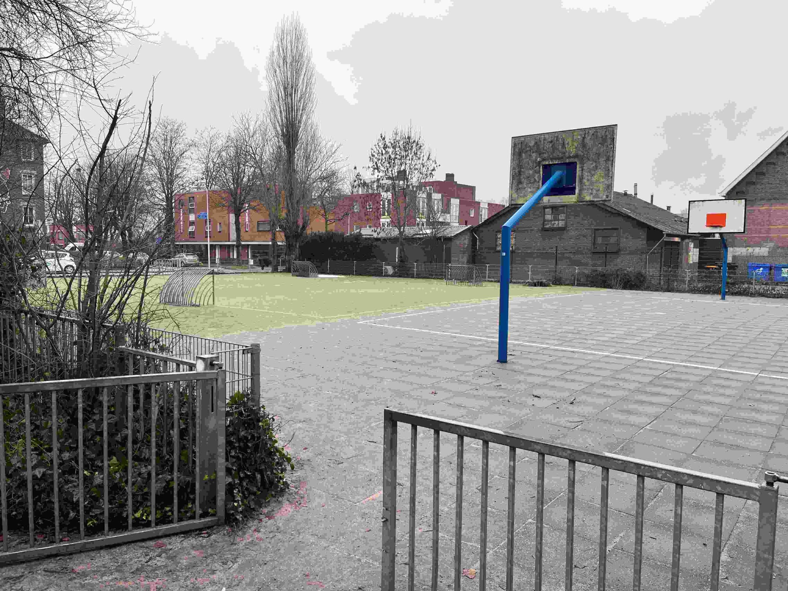 Rondom de drie aparte pleinen staan hekken, maar de meeste poorten zijn altijd open. Buiten schooltijd worden de pleinen gebruikt door bso-kinderen, buurtkinderen en hun (groot)ouders. Kristel is medeverantwoordelijk voor de schoolactiviteiten op het plein. “De pleinen zijn ’s middags nooit vol, maar er spelen vaak kinderen. Vooral het voetbal- en basketbalveld is populair.”